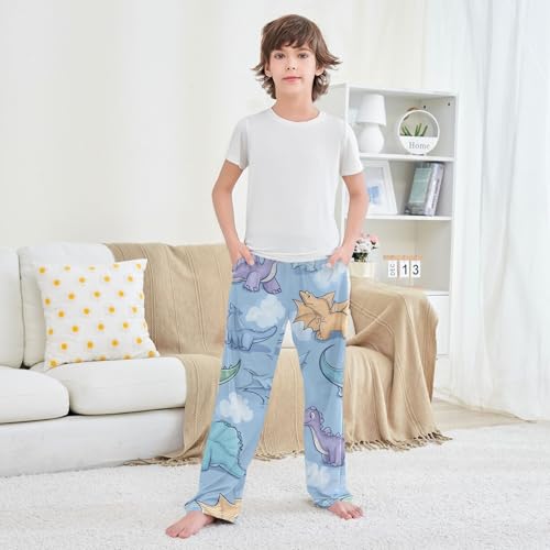 ZZXXB Cartoon Dinosaurs Print Boys Long Pants Soft Trousers Elastic Waist Kids Lounge Bottoms with Pockets S-XL 6
