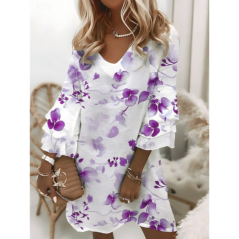 More information about Women's Mini Dress A Line Dress Sundress Summer Dress Boho Party Regular Fit Layered Ruffle 3/4 Length Sleeve V Neck Light Blue Light Green Purple Summer