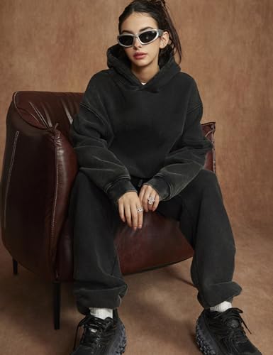 Arssm Mens Oversized Hoodie Acid Wash Pullover Vintage Cotton Heavyweight Sweatshirt Fleece Hoodie Men Streetwear