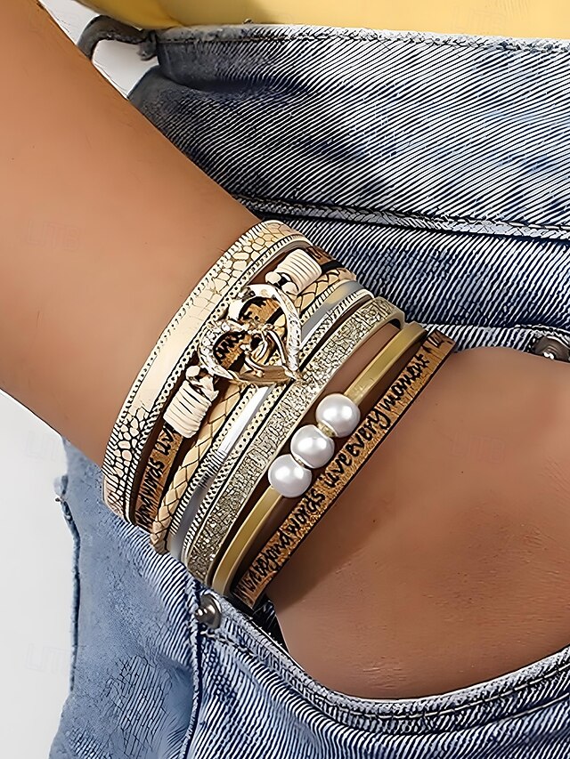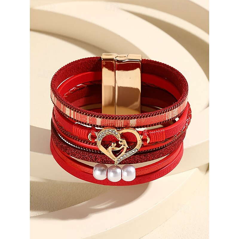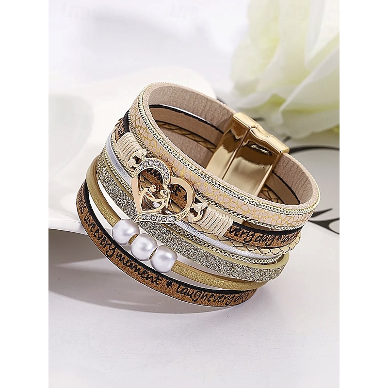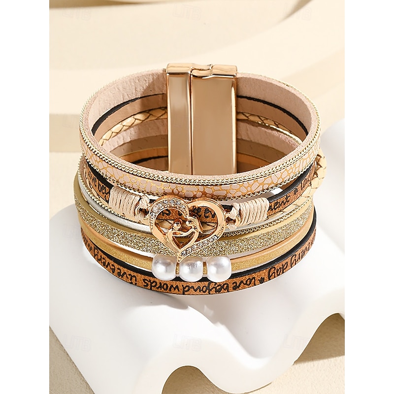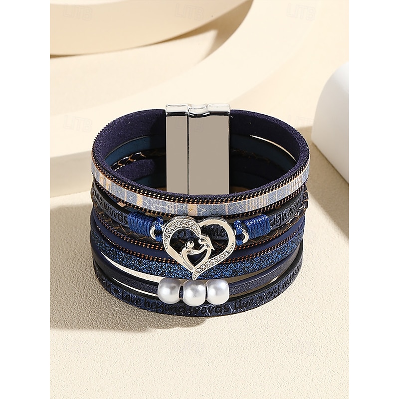 $11.99 - Women's Magnetic Faux Leather Bracelet – Heart & Pearl Charm Alloy Cuff with Inspirational Text, Boho Style Fashion Jewelry Gift for Mom, Suitable for Mother's Day, Birthdays and Casual Outfits 2025. Shop for cheap Women's Bracelet online? Buy at lightinthebox.com on sale today!
