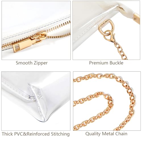 • 【Adjustable & Detachable Chain】 This small clear bag come with detachable gold chain that can be adjusted from 10 inch to 23 inch to suit your preference, you can carry it as a cute handbag, shoulder bag, crossbody bag or clutch purse, elevating your look every time. You can totally free your hands and enjoy games or concerts