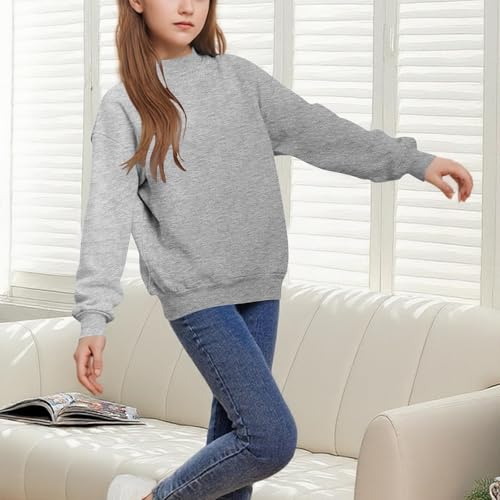 Mockneck Sweatshirt Teens Girls Plain Loose Fit Crewneck Pullover Casual Long Sleeve Kids Fall Drop Shoulder Tops