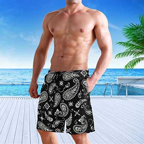 visesunny Paisley Black Pattern Men's Swim Trunks Quick Dry Bathing Suits Beach Swim Shorts 6