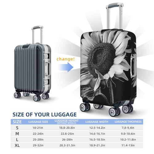 Sunflower Black Grey Print Travel Luggage Cover - Personalization Elastic Suitcase Protector,XL(Fit 29-32 Inch Luggage) 5