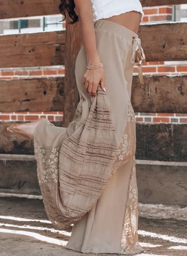 Melliflo Women's Boho Lace Patchwork Wide Leg High Waist Flowy Pants 2025 Summer Casual Loose Lounge Pants 2
