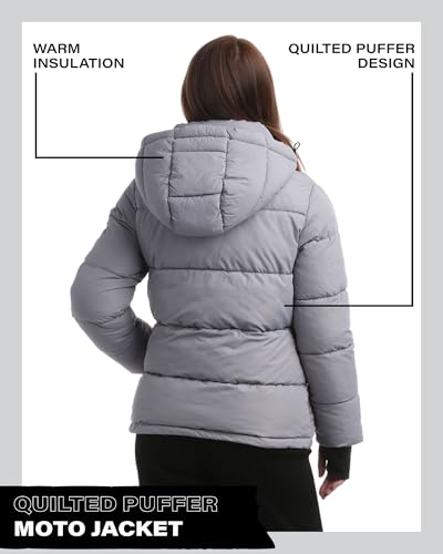 More information about Steve Madden Quilted Moto Puffer Jacket - Heavyweight Hooded Winter Coat - Insulated Outerwear Jacket for Women (Sizes: S-XL)
