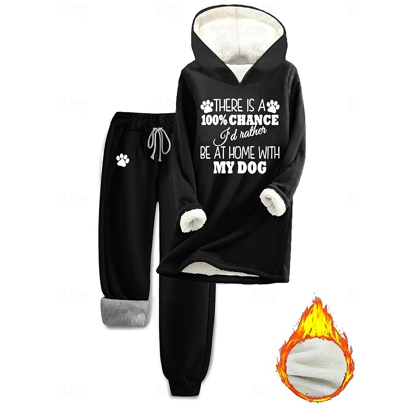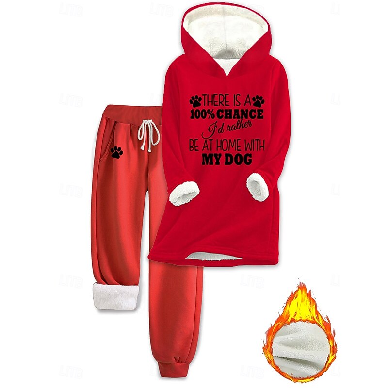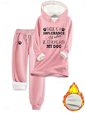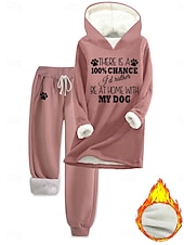 More information about Women's Warm Daily Two Piece Sets Tracksuit Pants Sets Long Sleeve Hooded Graphic Letter Drawstring Print Casual Daily Black Pink Dark Pink Fall Regular Fit