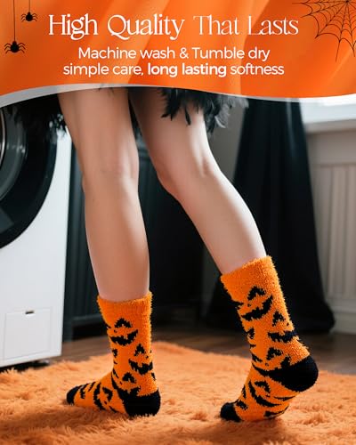• Festive Looks & Gift-Ready: These ultra-soft fuzzy socks are designed with cute ghosts, pumpkins, witch hats; elegantly packaged, they’re a ready-to-give Halloween gift perfect for your family, friends, coworkers