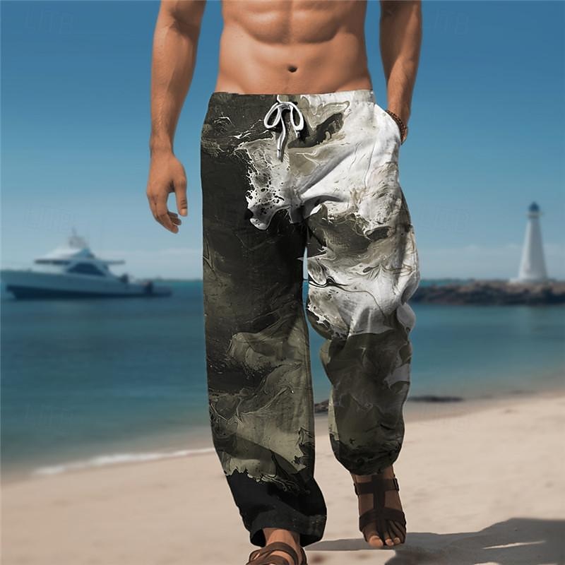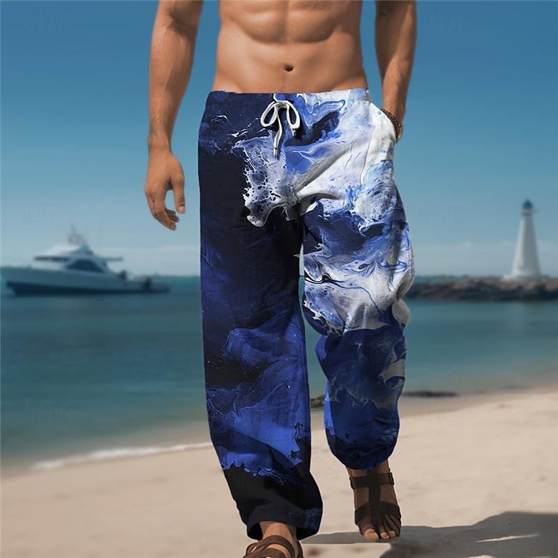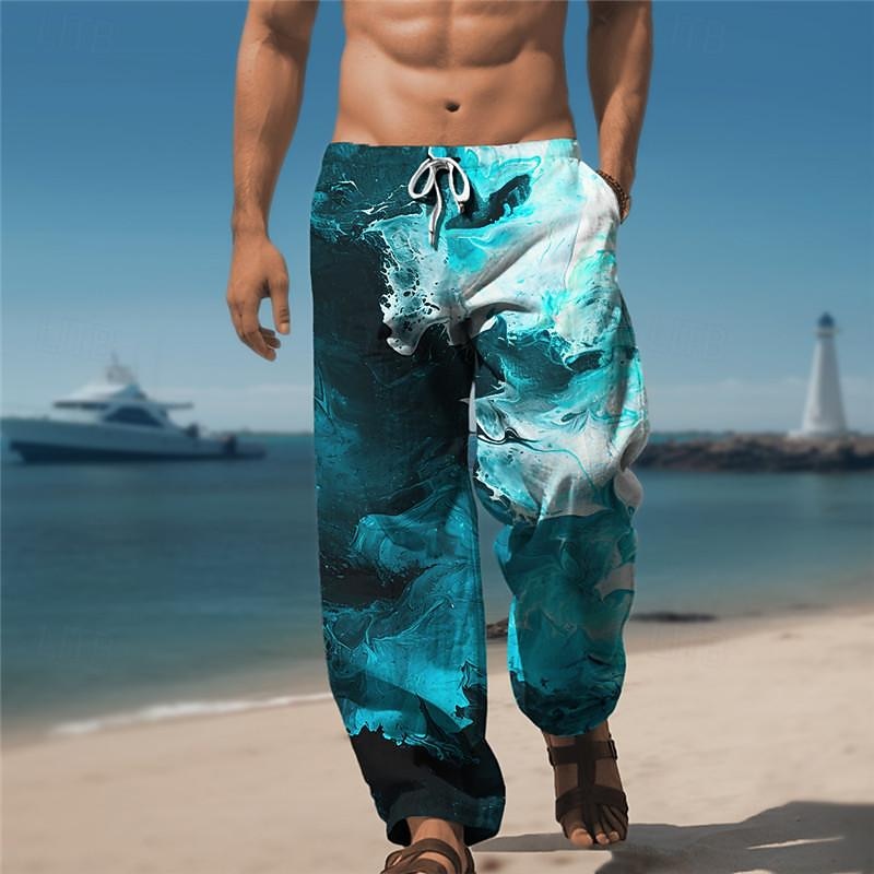 Waves Men's Resort 3D Printed Casual Pants Trousers Elastic Waist Drawstring Loose Fit Straight-Leg Summer Beach Pants S TO 3XL 7