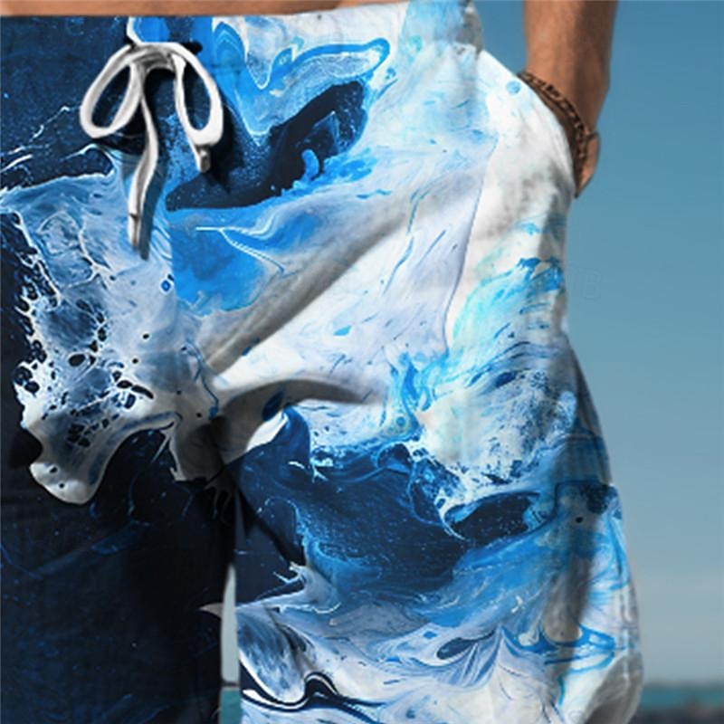 Waves Men's Resort 3D Printed Casual Pants Trousers Elastic Waist Drawstring Loose Fit Straight-Leg Summer Beach Pants S TO 3XL 3
