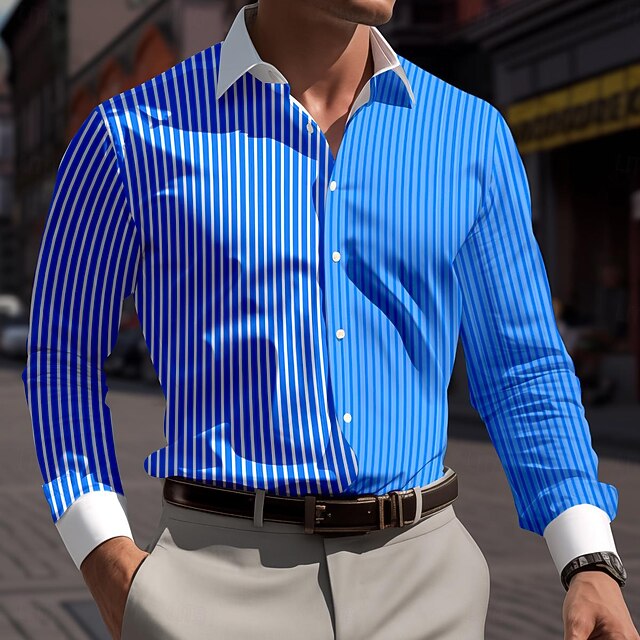 More information about Men's Dress Shirt Printed Shirts Plaid Vacation Street Violet Royal Blue Orange Long Sleeve Turndown Spring & Summer Clothing Apparel Print