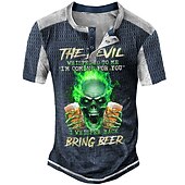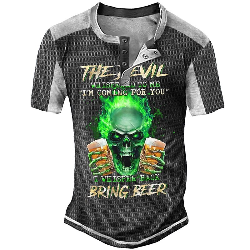 More information about Men's Halloween Graphic Beer Skulls Henley Shirt Tee Short Sleeve 3D Print Fashion Designer Comfortable Outdoor Casual Daily Summer Black Navy Blue Purple Brown Green Henley Henley T-Shirt