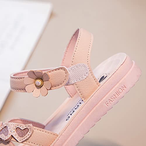 HOT ! Heart Leatherette Sandals for Kids Girls Summer Soft Footbed Open Toe Princess Sandals Dress Shoes (Pink, 12 Little Child)