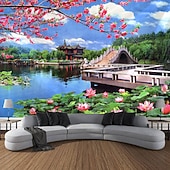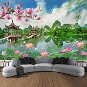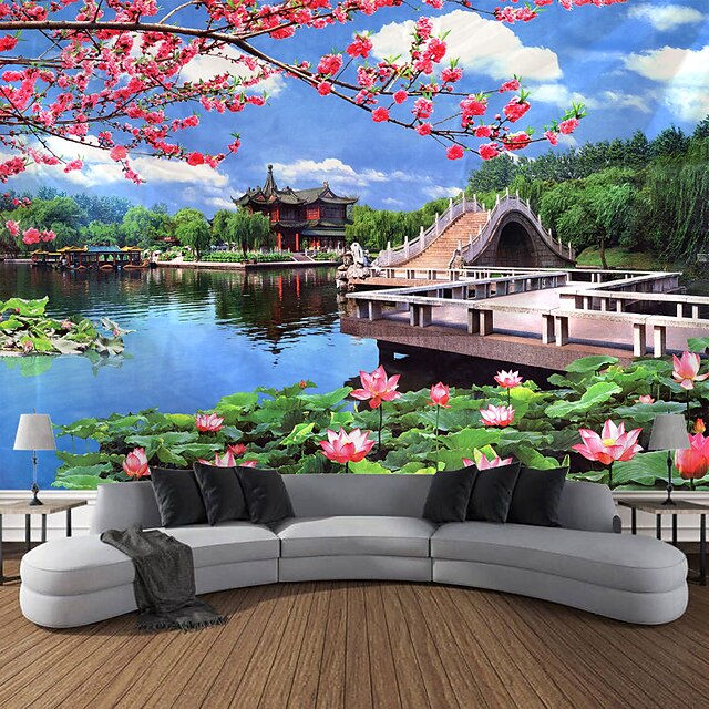 HOT ! Chinese Garden Hanging Tapestry Wall Art Large Tapestry Mural Decor Photograph Backdrop Blanket Curtain Home Bedroom Living Room Decoration
