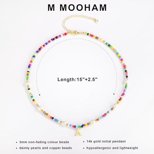 HOT ! M MOOHAM Colorful Initial Necklaces for Girls - Beaded Pearl Choker Necklace for Women Teen Girl Colorful Summer Boho Necklace Jewelry, Trendy Personalized Letter Initial Gifts Birthday Gifts Kids