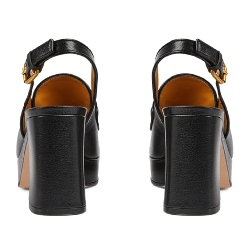 YDN Women Platform Square Toe Chunky High Heel Pumps Slingback Strap Buckle Chains Loafer Shoes Daily Shopping Outdoor Size 4-16 US