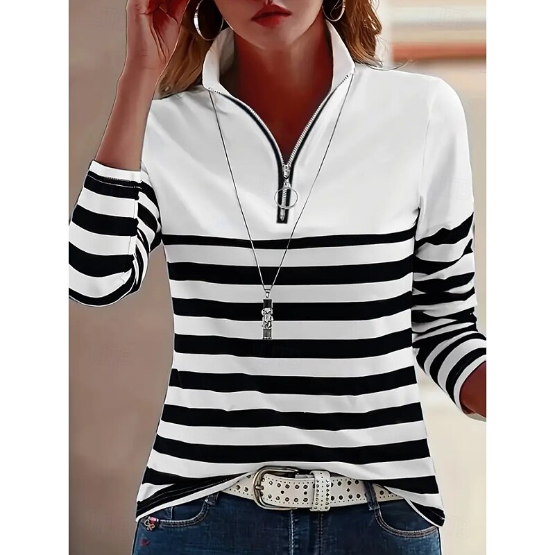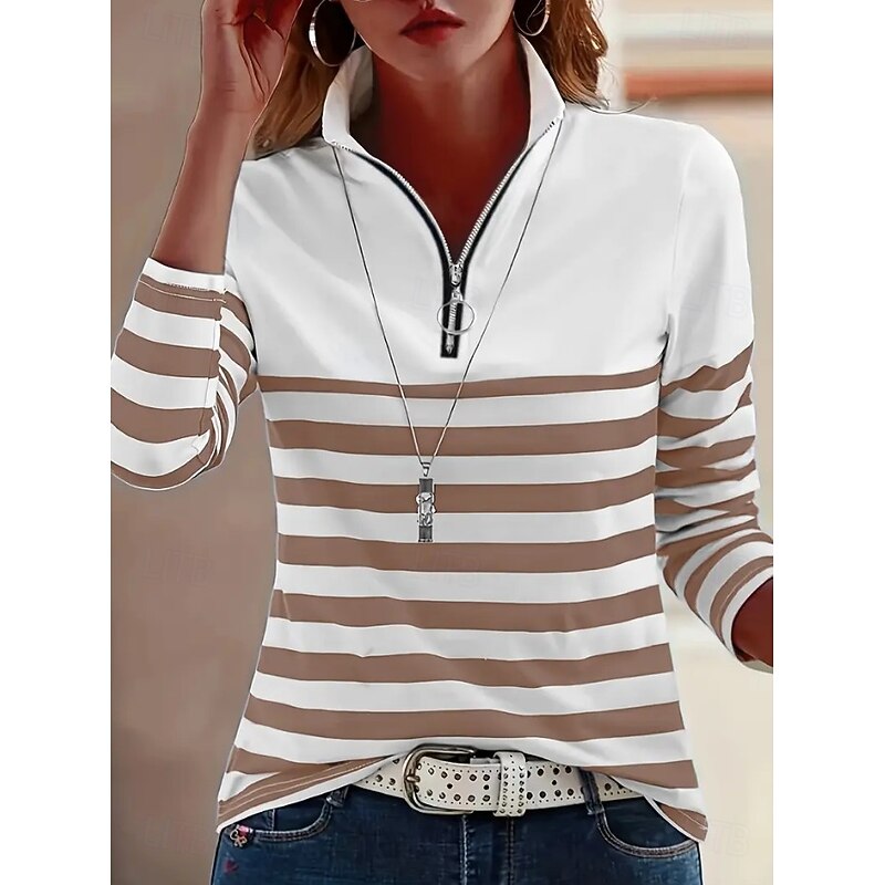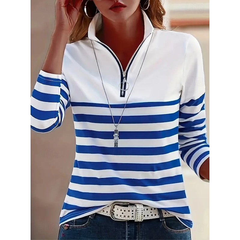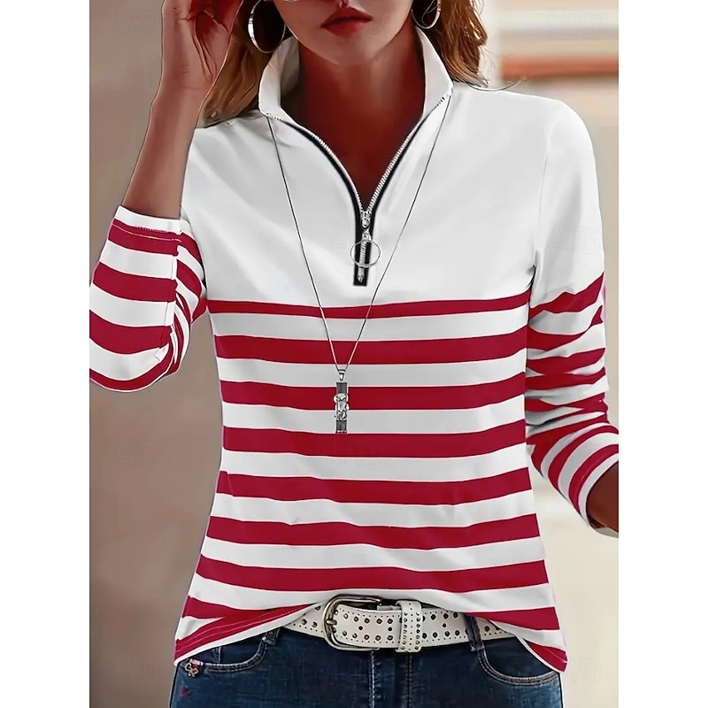 More information about Women's Tunic Graphic Striped Vintage Stylish Classic Long Sleeve Shirt Collar Regular Tops Daily Sports Going out Black Red Blue Green Khaki Spring Fall