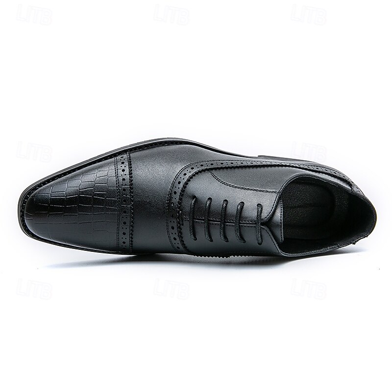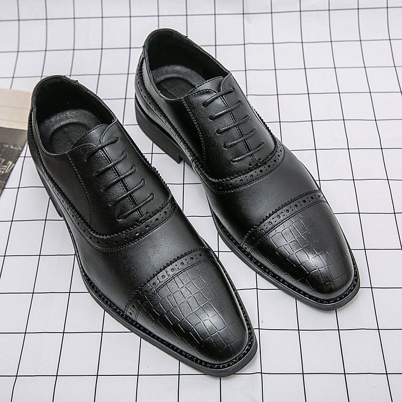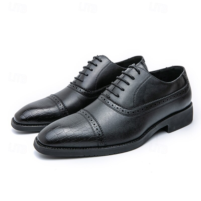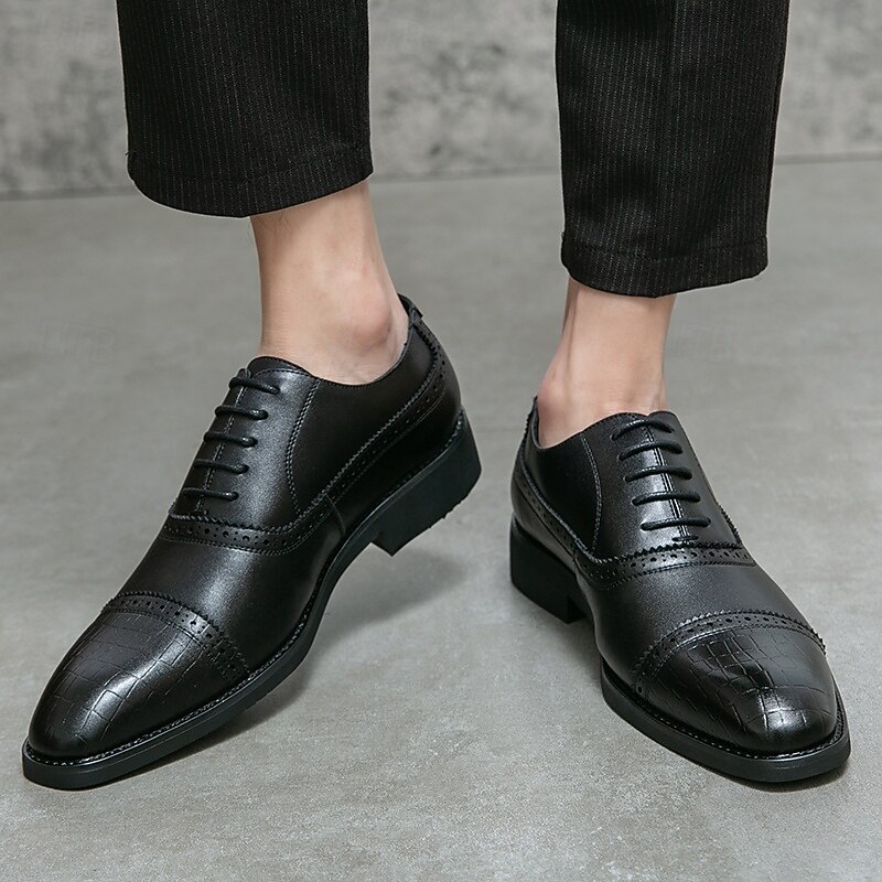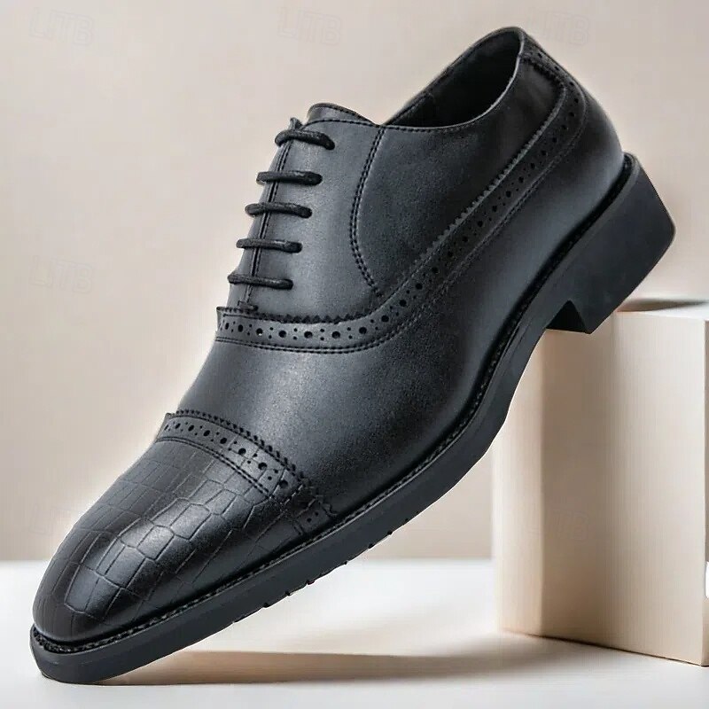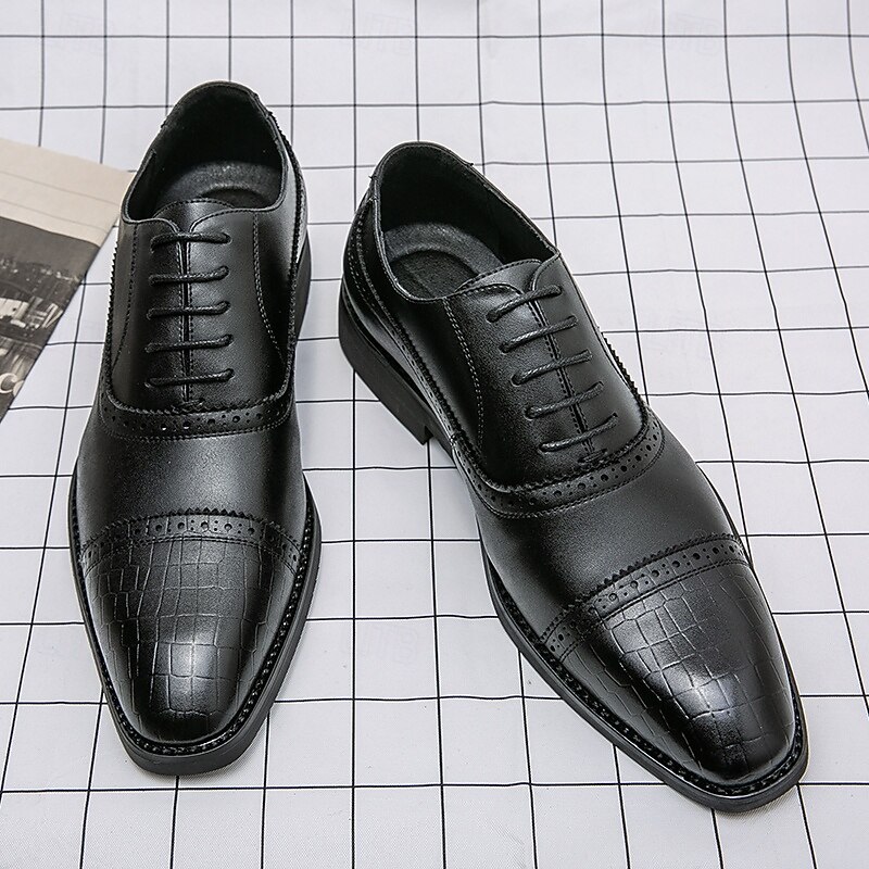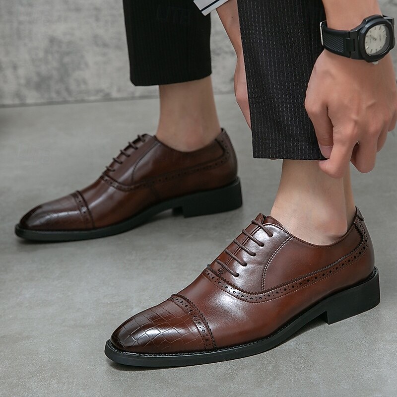 HOT ! Elegant Brown Faux Leather Dress Shoes with Brogue Detailing for Professional and Business Settings
