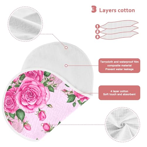 xigua Floral Roses Baby Burp Cloths for Newborn Boys and Girls 4 Pack, Soft & Absorbent Cotton Baby Burp Cloth, Baby Washcloths, Newborn Towel, Burp Rags 3