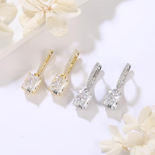 • 【Emerald Cut Drop Earrings】 The size of this emerald cut diamond earring is 4ct/8*10mm. 925 sterling silver earrings plated with white gold. Fashionable and elegant in the sun, highly polished flat back make the diamond earrings absolutely comfortable to wear.