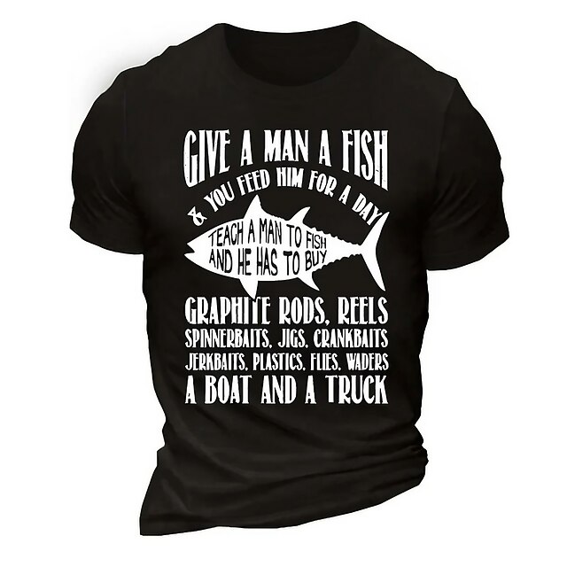 Highlights [Fabric] : Crafted from 100% high-quality cotton, this men's T-shirt ensures superior comfort and breathability, making it an excellent choice for hot summer days. The micro-elastic fabric allows for ease of movement without sacrificing style. [Fit] : This T-shirt features a relaxed fit, offering both style and comfort. Its classic crew neck and short sleeves make it a staple for everyday casual wear, ensuring it pairs well with any outfit. [Design Highlights] : The standout feature of this T-shirt is its bold graphic print on the front, showcasing a humorous fishing-related message in white lettering. This playful design is perfect for adding a touch of fun to any casual ensemble. [Occasions] : Suitable for a variety of occasions, this graphic T-shirt is perfect for vacations, street outings, or casual daily activities. It's an ideal choice for fishing enthusiasts or anyone looking to express a sense of humor through their clothing. [Size Range] : Available in a range of sizes from S to XXL, this T-shirt caters to different body types, ensuring a comfortable fit for everyone.
