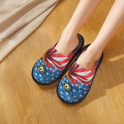 Eagle Head With American Flag Print Women Slippers Home Furry Shoes Keep Men Couples Shoes Warm For Women- 6