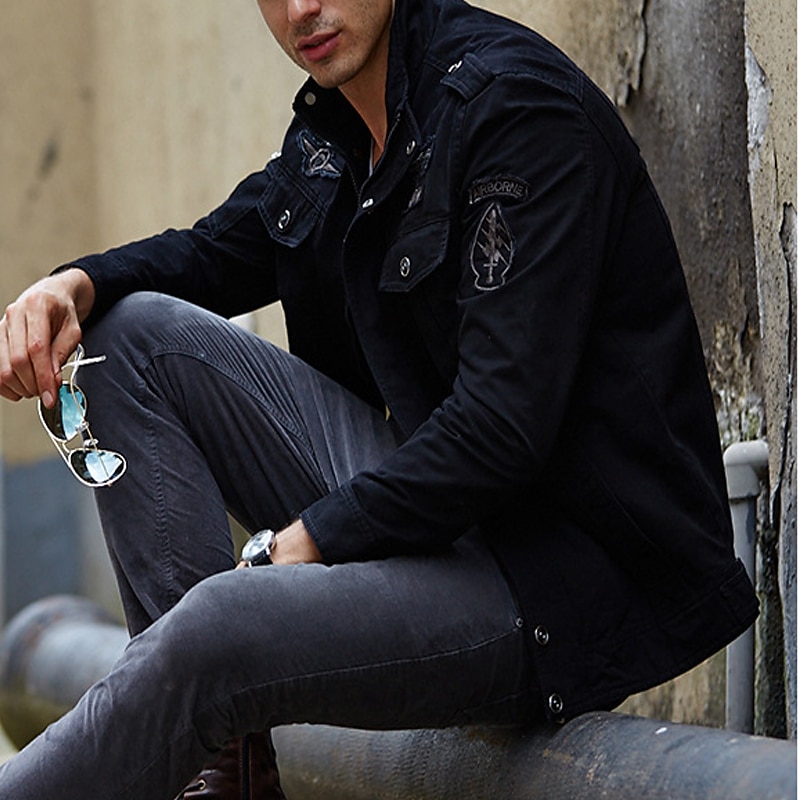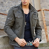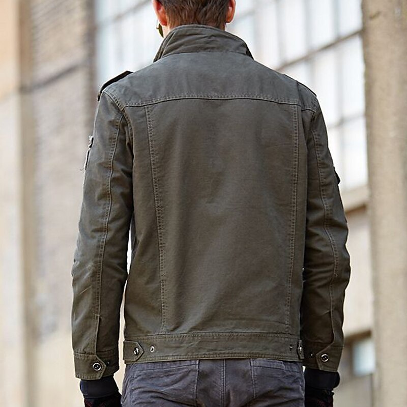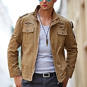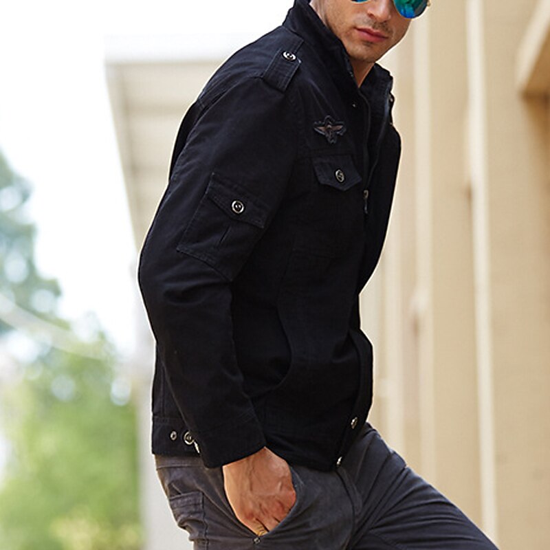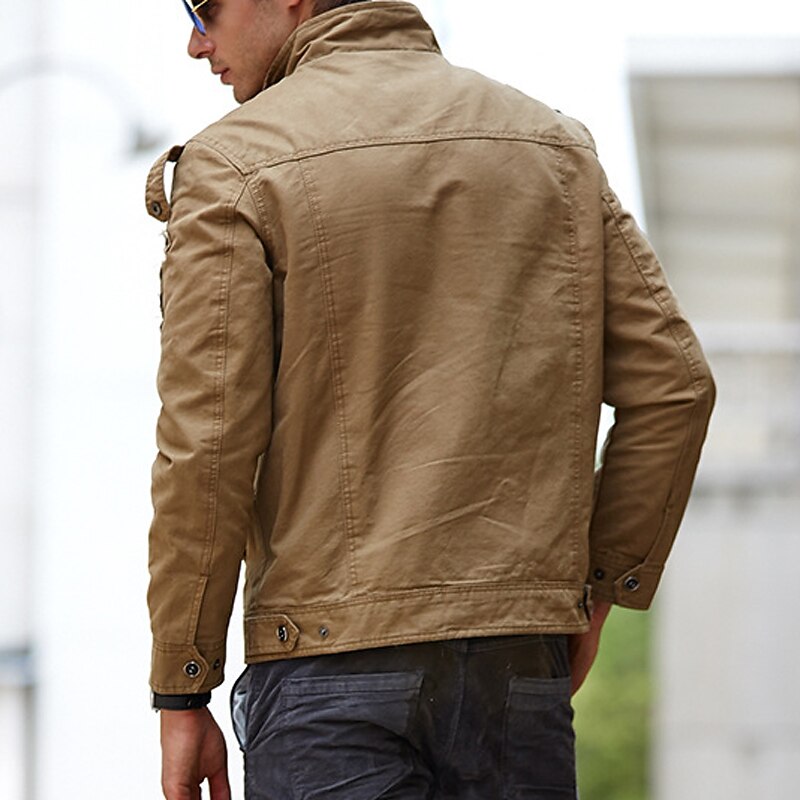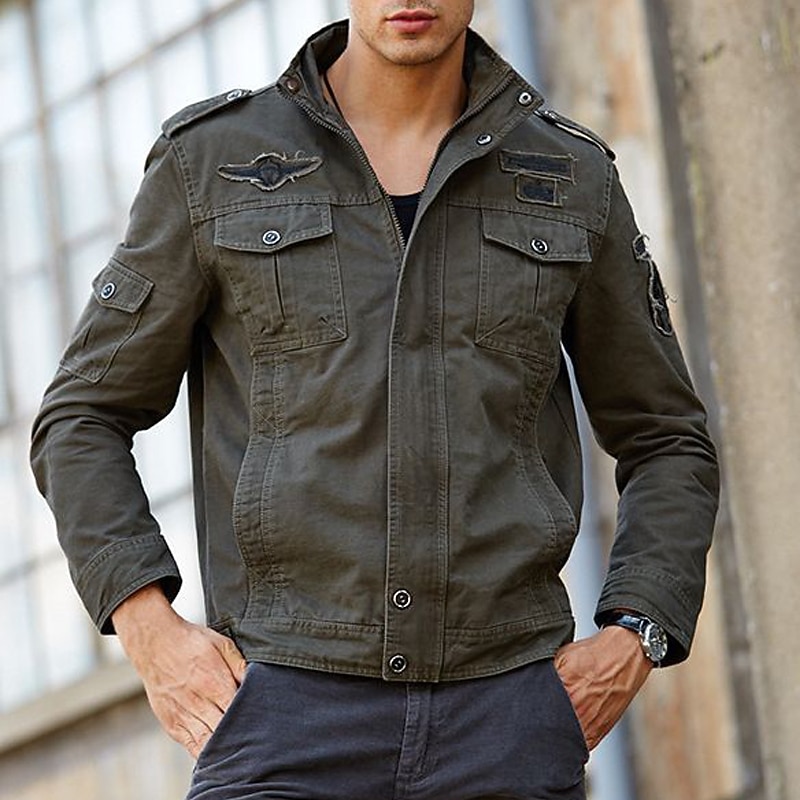 More information about Men's Bomber Jacket Varsity Jacket Tactical Jacket Outdoor Daily Wear Pocket Spring & Fall Plain Fashion Streetwear Standing Collar Regular Black Khaki Army Green Jacket
