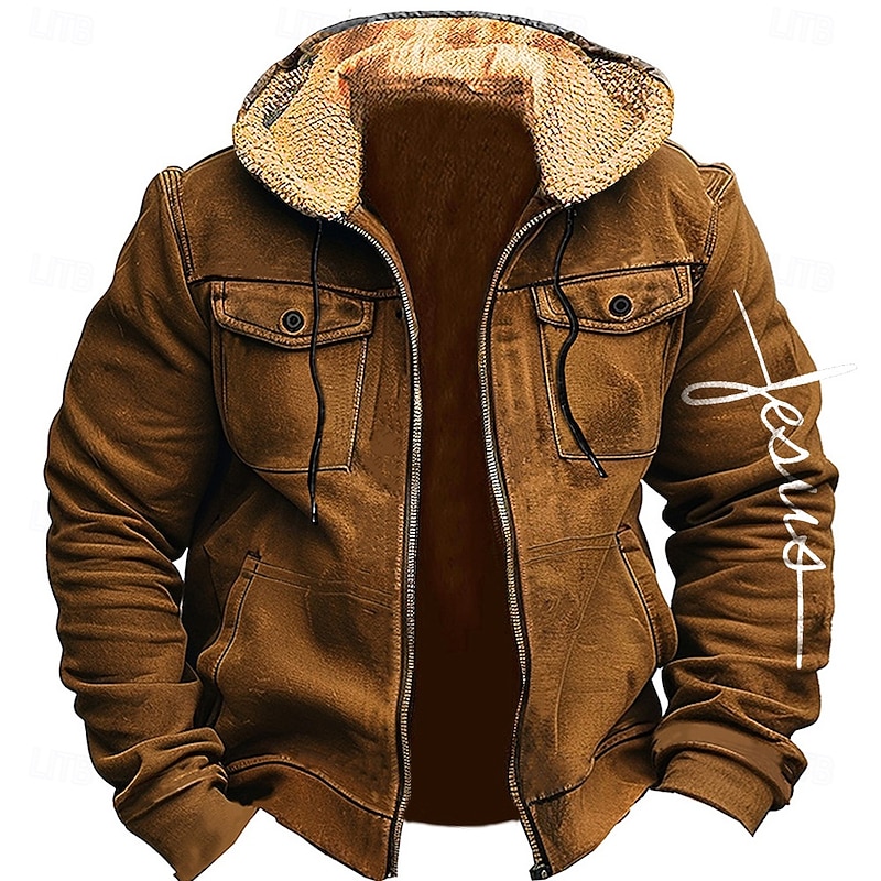 More information about Men's Cross Fleece Hoodies Fashion Cool Long Sleeve Hooded Holiday Hunting Blue Brown Zipper Pocket Fall Winter Designer
