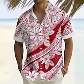 HOT ! Men's Floral Print Tropical Flowers Summer Hawaiian Shirt Button Up Shirt Aloha Shirt Short Sleeve Hawaiian Vacation Holiday Beach Wear Summer Turndown 3D Print Front One Pocket Linen Like Shirt Red