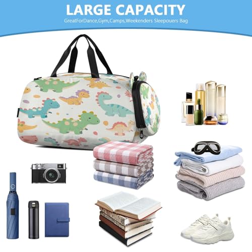 YETTASBIN Sport Travel Duffel Bag for Girls Boys, Cute Dinosaur Large Waterproof Weekender Overnight Bag, Detachable Shoulder Strap Gym Bag with Shoe Compartment & Wet Pocket 7