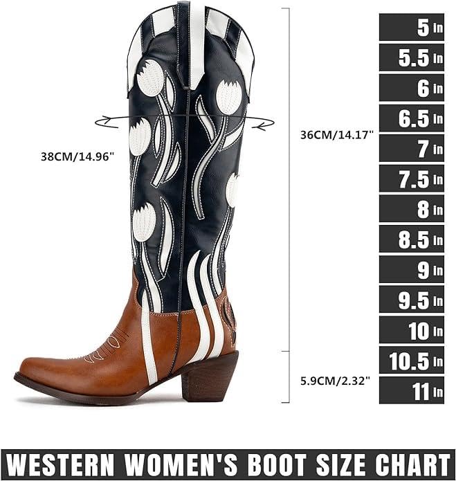 • 【Western Style】: Heel height 1.97 in,Durable soft material and Chunky heel design provides better support and stability,Make your walking more comfortable and stable, Cowboy Boots for Women look can be paired with jeans or dresses for a western flair to any outfit.