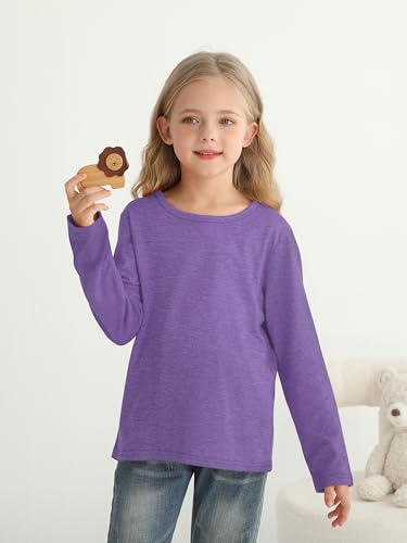 5 Pack Girls Long Sleeve Shirts Soft Crewneck Long-Sleeve T-Shirts Basic Tagless Layering Tees 5
