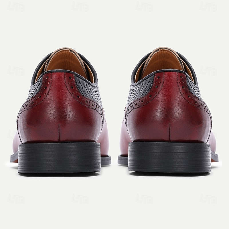 More information about Men's Red and Black Woven Leather Oxford Shoes – Premium Cowhide, Brogue Detailing, Formal Dress Shoes for Business Meetings and Special Occasions