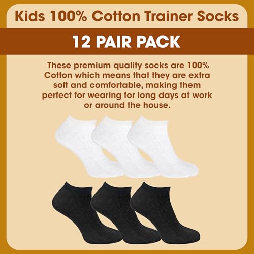 Kids 100% Cotton Ankle Socks | Sock Snob | Girls & Boys No Show Trainer Socks 6