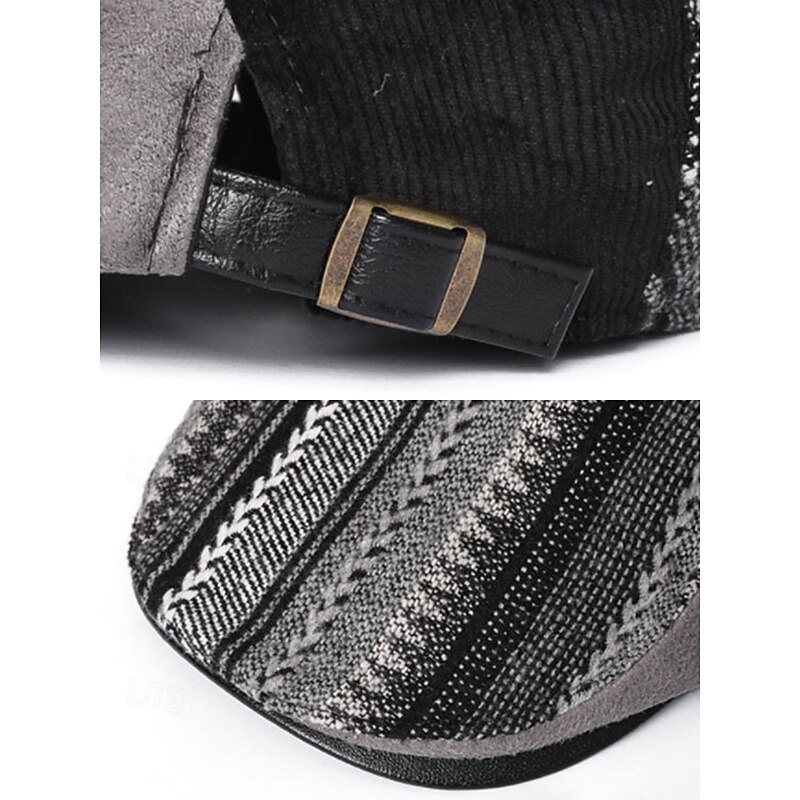 Men's Herringbone Ivy Cap with Adjustable Leather Strap - Vintage Style Flat Cap, Ideal for Casual Wear and Outdoor Activities 12