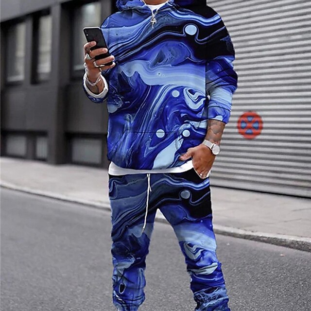 More information about Men's Tracksuit Hoodies Set Royal Blue Blue Purple Light Blue Hooded Graphic Universe 2 Piece Print Sports & Outdoor Casual Sports 3D Print Polyester Streetwear Sportswear Basic Spring Fall Clothing