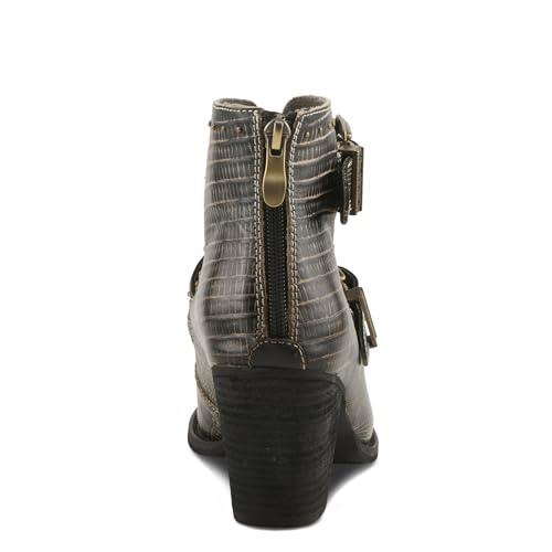 HOT ! Spring Step L'Artiste Notched-Nature Western Booties | Embossed Leather Ankle Boots with Cutout Design