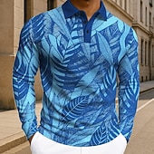More information about Men's Plants Leaves Polo Long Sleeve Polo Shirts Lapel Casual Athleisure Daily Wear 3D Print Buttons Spring Fall Winter Blue Green Gray