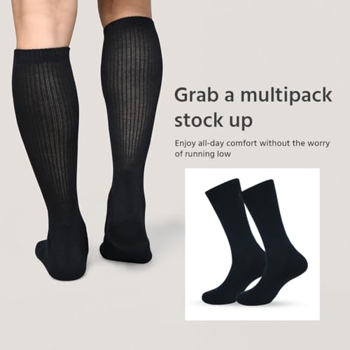 • VERSATILE FOR EVERYDAY WEAR:These crew socks are a versatile addition to any wardrobe. From casual days at home to running errands or heading to the office, these socks offer an understated style and a reliable fit for all occasions. Their classic crew length makes them perfect for pairing with sneakers, casual shoes, and even boots, making them a great option for both indoor and outdoor wear. Whether you are lounging, commuting, or going about your daily tasks, these socks keep you comfortable.