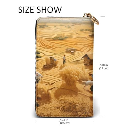 HOT ! Wheat Harvest Picture Leather Long Clutch Wallet for Fashionable Girls and Women - Durable, Stylish, and Functional, Black, One Size