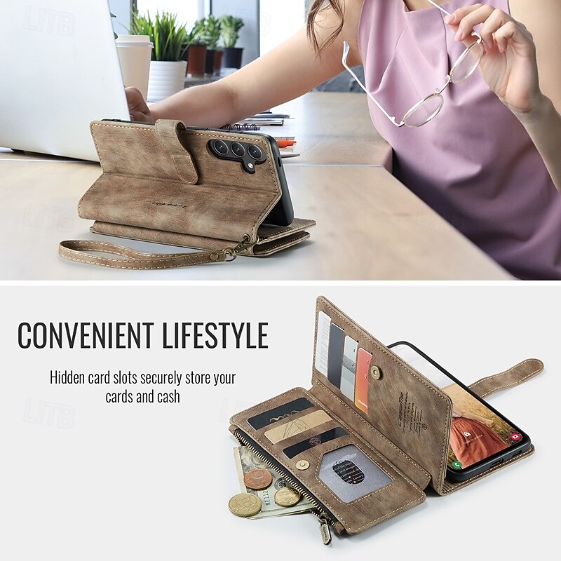 $21.99 - Phone Case For S25 S24 S24 FE S23 S22 S21 Ultra Plus A55 5G A35 5G A25 A15 Wallet Case with Stand Holder Magnetic Zipper Retro TPU PU Leather 2025. Shop for cheap Samsung Cases online? Buy at lightinthebox.com on sale today!