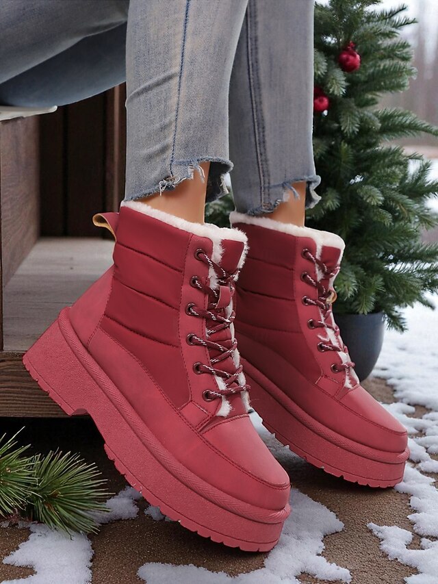 $42.99 - Women's Warm Fur Lined Waterproof Winter Boots, Lace-Up Platform Snow Boots with Non-Slip Sole, Fashionable Outdoor Casual Footwear for Cold Weather 2025. Shop for cheap Women's Christmas Shoes online? Buy at lightinthebox.com on sale today!