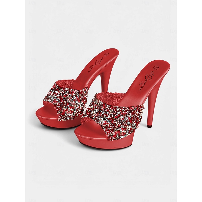 More information about Black Rhinestone Platform Mules – Women's Sexy High Heel Slip-On Sandals for Party & Clubwear