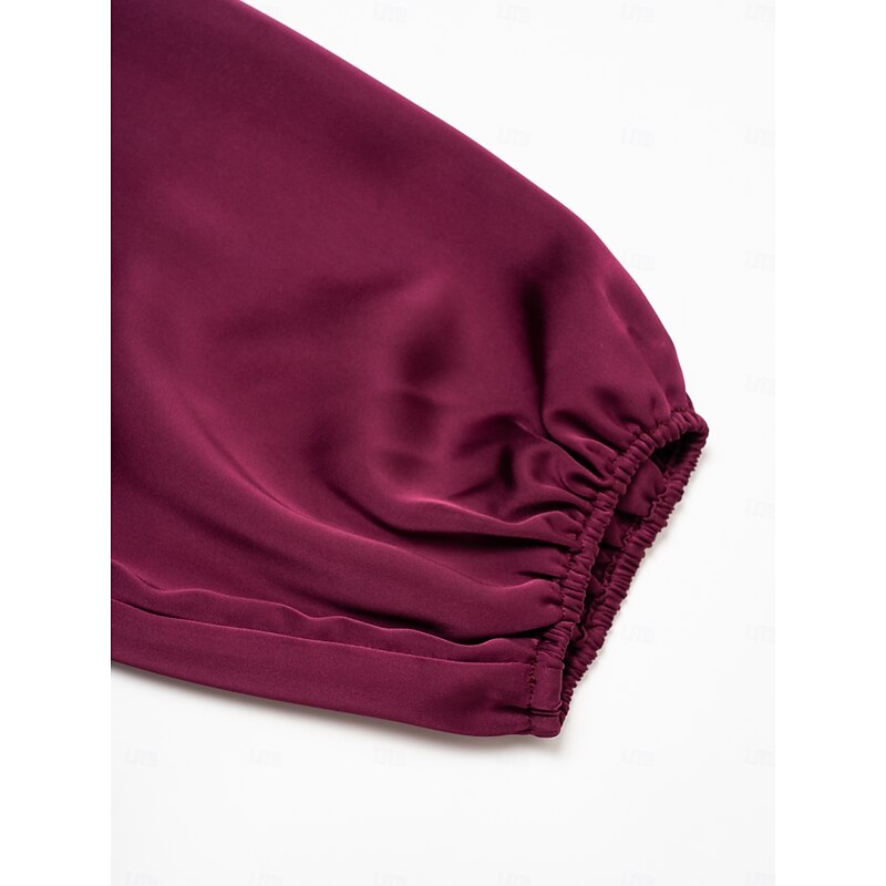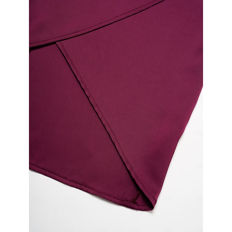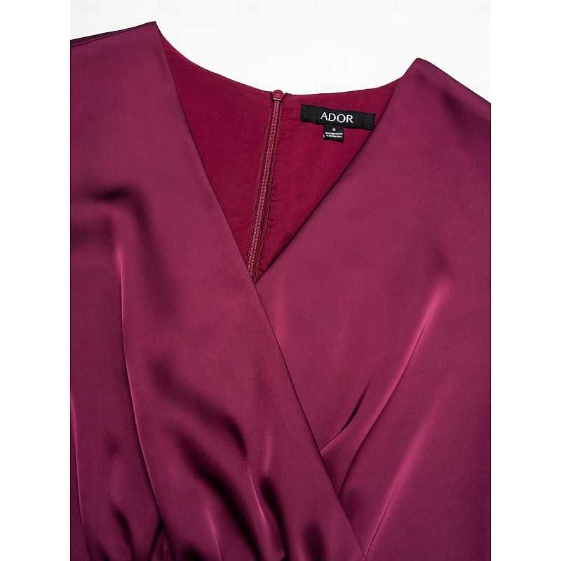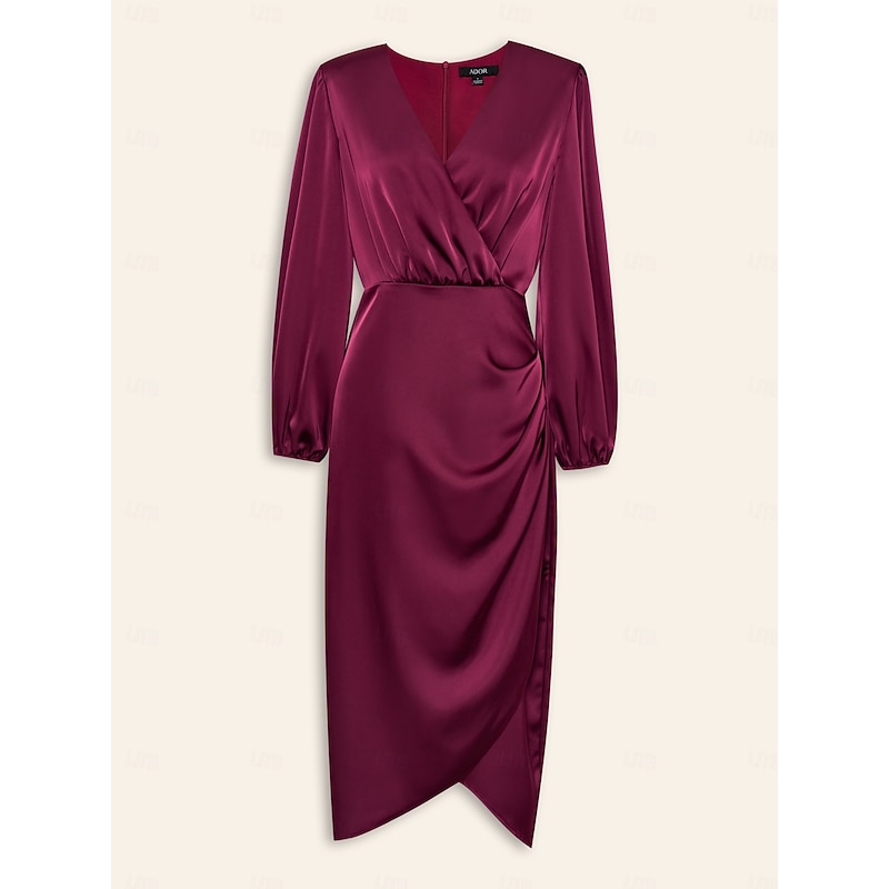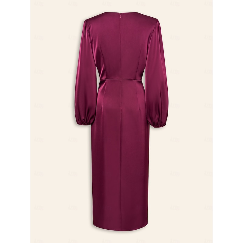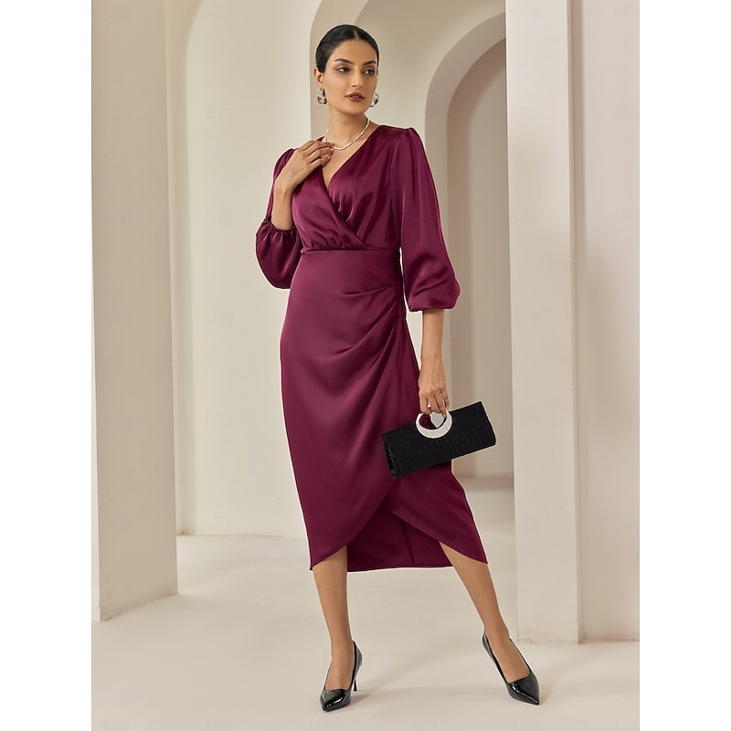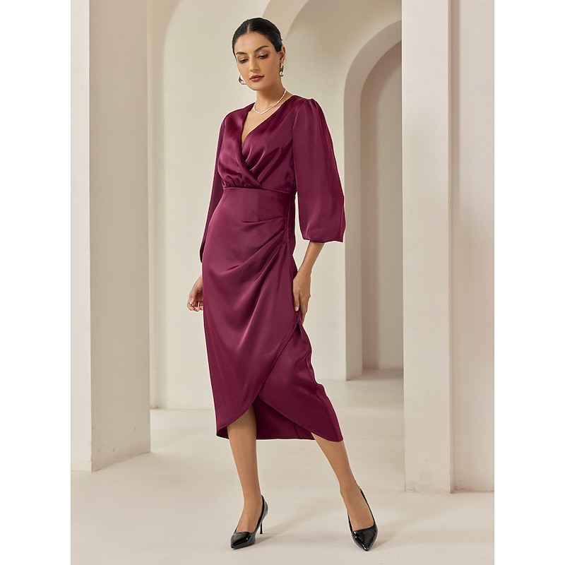 More information about Women's Satin Dress Elegant Dress Burgundy 3/4 Length Sleeve Solid Color Ruched Wrap Spring & Fall Cross-Seasons Elegant Party / Evening Party S M L