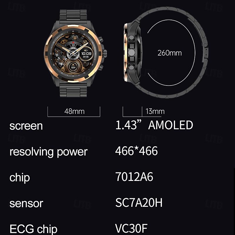 696 HK98 Smart Watch Fitness Tracker ECG PPG Bluetooth Call Reminder Android iOS IP67 48mm 1.43" 13