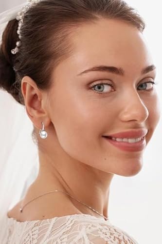 • ✅Pearl Earrings for Women Sterling Silver 925 Earrings Classical Drop Dangle Jewelry Hypoallergenic White Pearl 9 MM Elegant Design