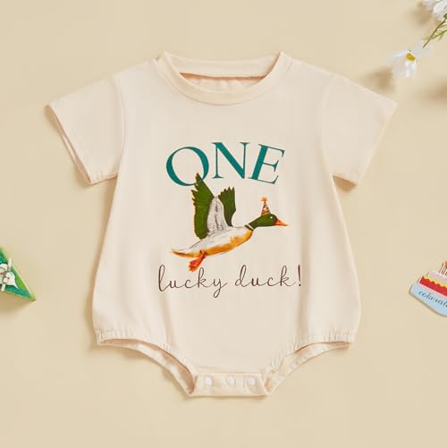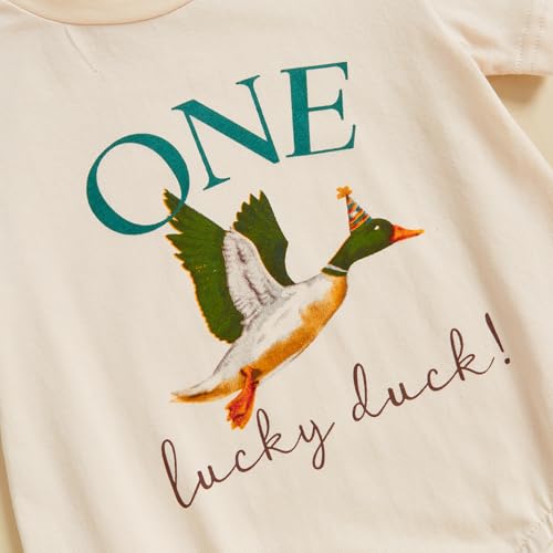 • 🎂Design: First birthday outfit boy, birthday boy outfit 1 year old, baby boy one lucky duck birthday outfit, letters "One Lucky Duck" printed short sleeve birthday bubble romper, it is very suitable for wearing in summer, wear the trendy birthday outfit, your boys will receive lots of compliments.