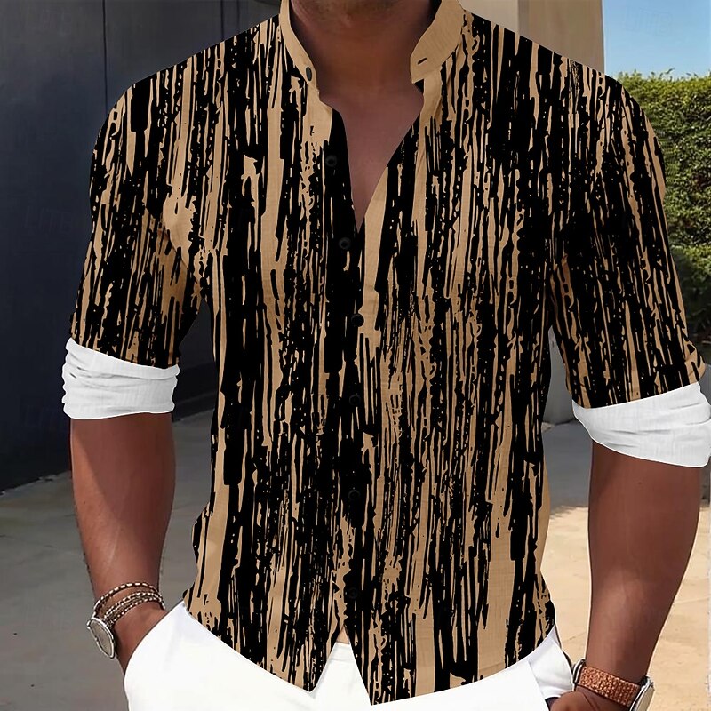 More information about Men's Line Dress Shirt Button Up Shirt Long Sleeve Casual Vacation Home Daily Summer Spring & Fall Grandad Collar Band Collar 3D Print Black Blue Brown Green