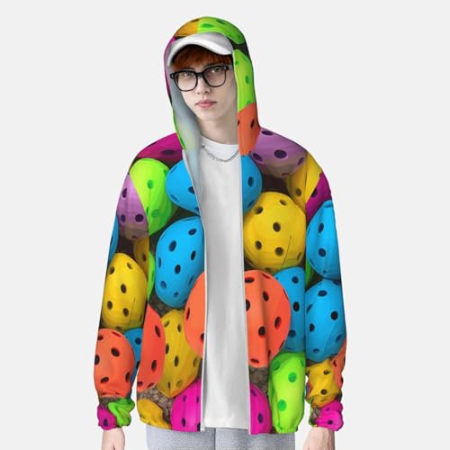 • UV Protection: Our Pickleball Balls Colors Pattern long sleeve sun shirts features cutting-edge UPF 50+ technology, effectively blocking UV rays to ensure robust sun protection during your outdoor adventures. Designed with a hood to protect the neck, and other sun-exposed areas. Ideal for extended outdoor activities