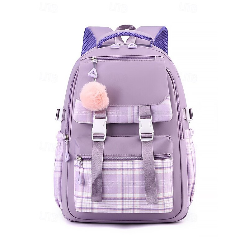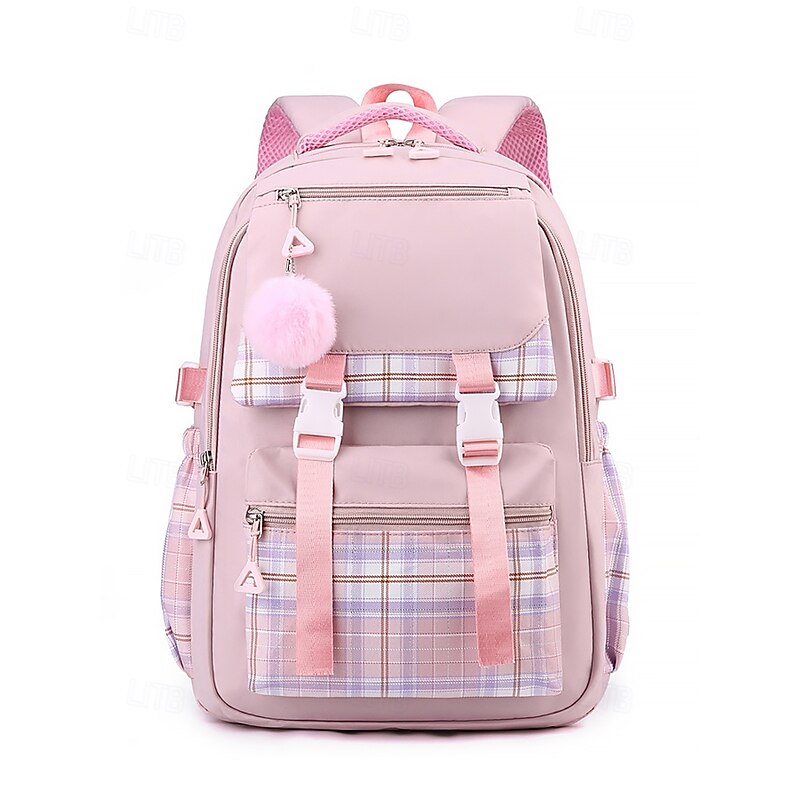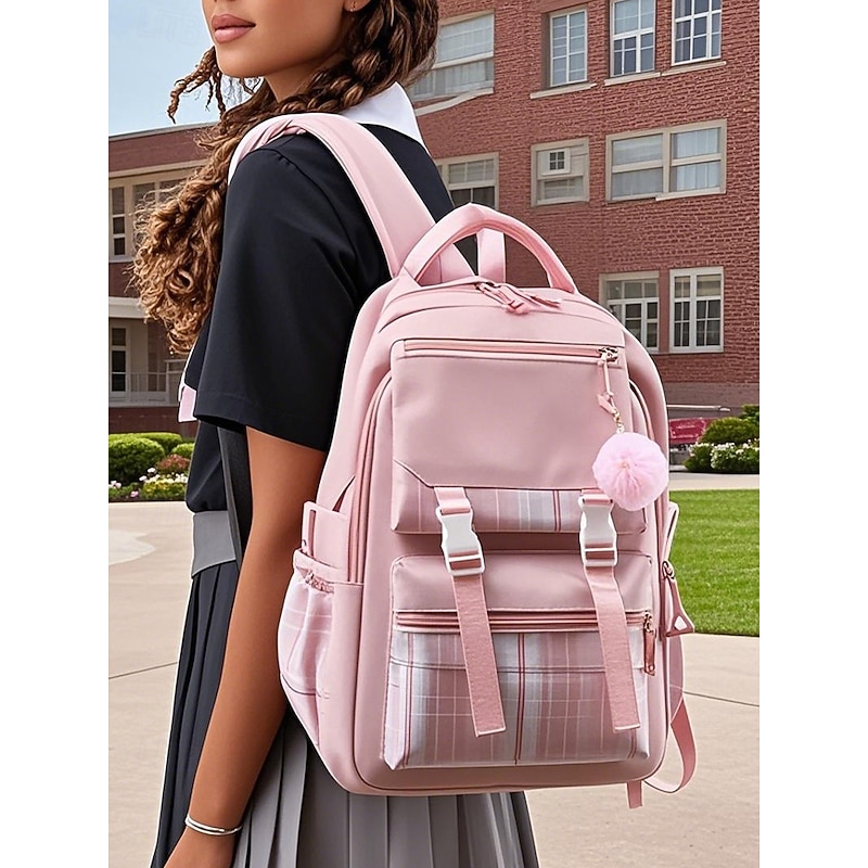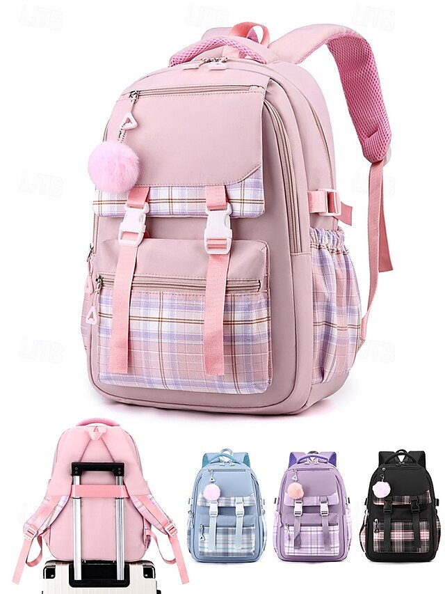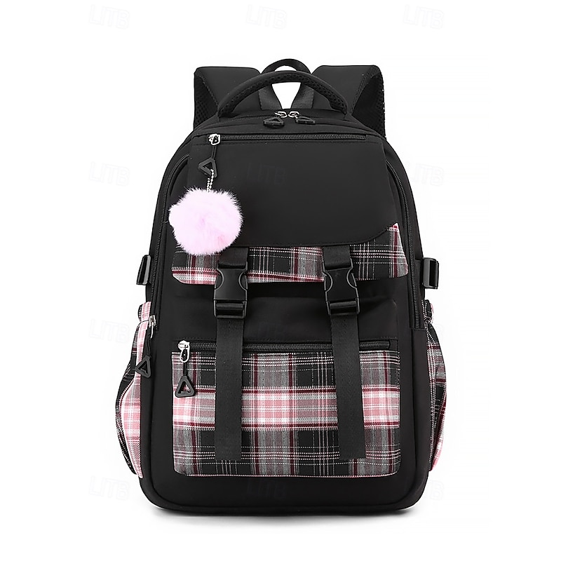 $26.99 - Girls' Large Capacity Plaid Backpack with Pom Pom Charm – Waterproof Nylon School Bag for Teens, Travel and College Use Black Pink Blue 2025. Shop for cheap Kids & Teen Backpacks online? Buy at lightinthebox.com on sale today!